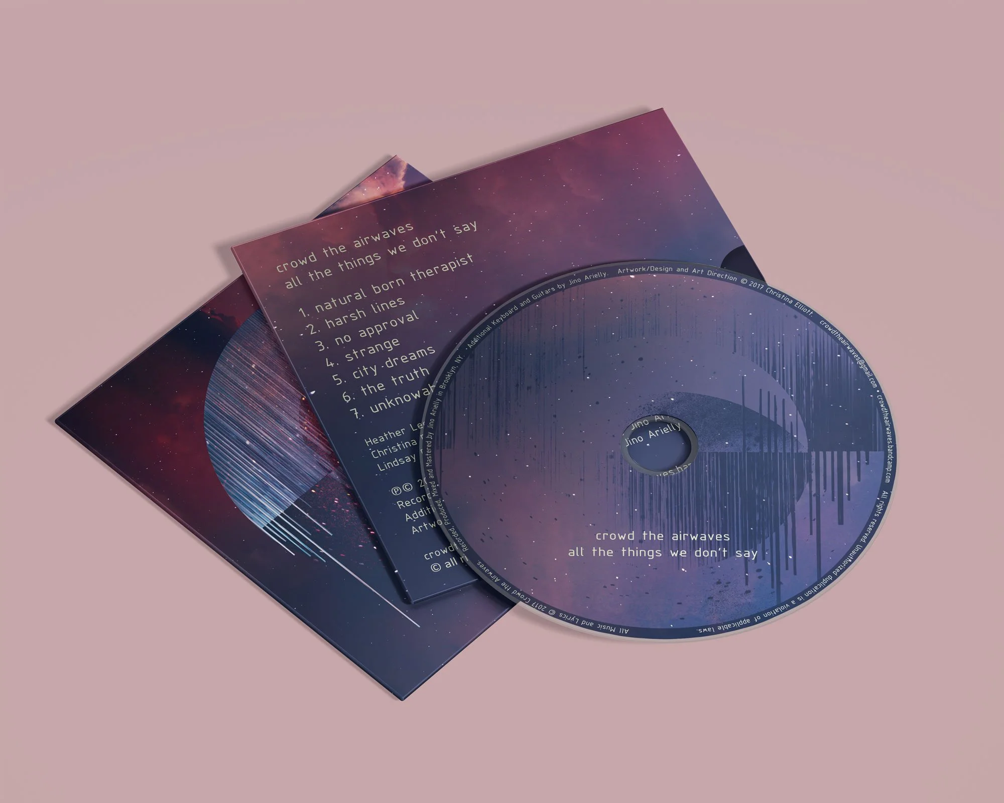 All the Things We Don’t Say is the 2017 sophomore album by my personal project: the New York alt‑pop trio, Crowd the Airwaves. As the band’s in-house designer, I created the graphic artwork and packaging design for the release. The album artwork combines rippled glass textures from a building façade with telescope imagery, arranged into a clean geometric composition. Minimalist, lowercase typography keeps the focus on the visuals and the music, maintaining clarity and intrigue even at smaller sizes. The design was released across both digital and physical formats, with a poster adaptation that remains a staple at merchandise tables.